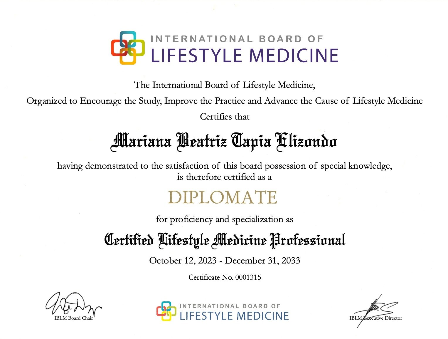 La certificación es la misma, sin embargo, el titulo para médicos es Certified Lifestyle Medicine Physician y el de profesionales de la salud es Certified Lifestyle Medicine Professional.